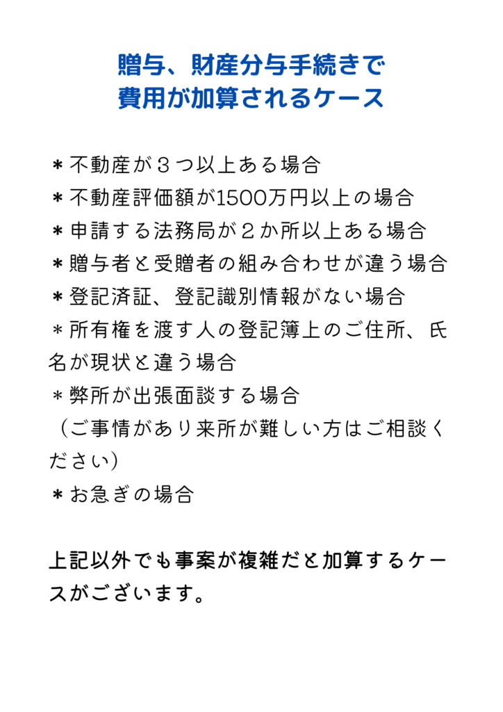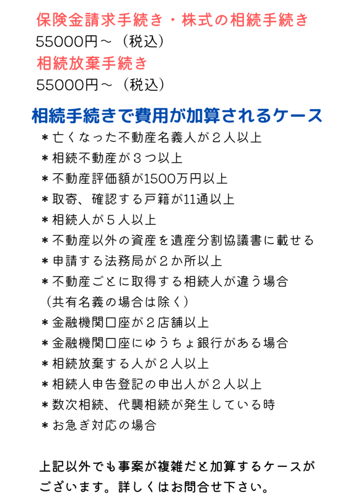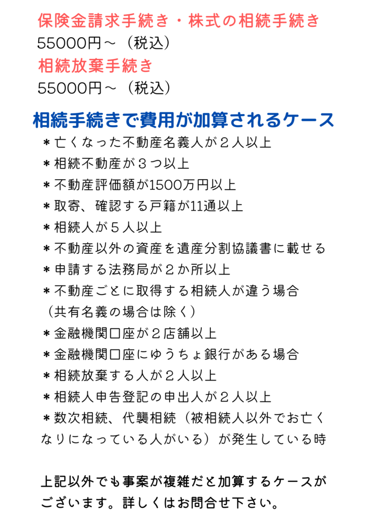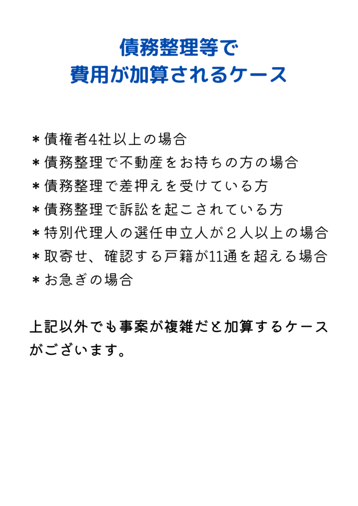 手続きの煩雑さによっては、料金表と異なる場合があります。