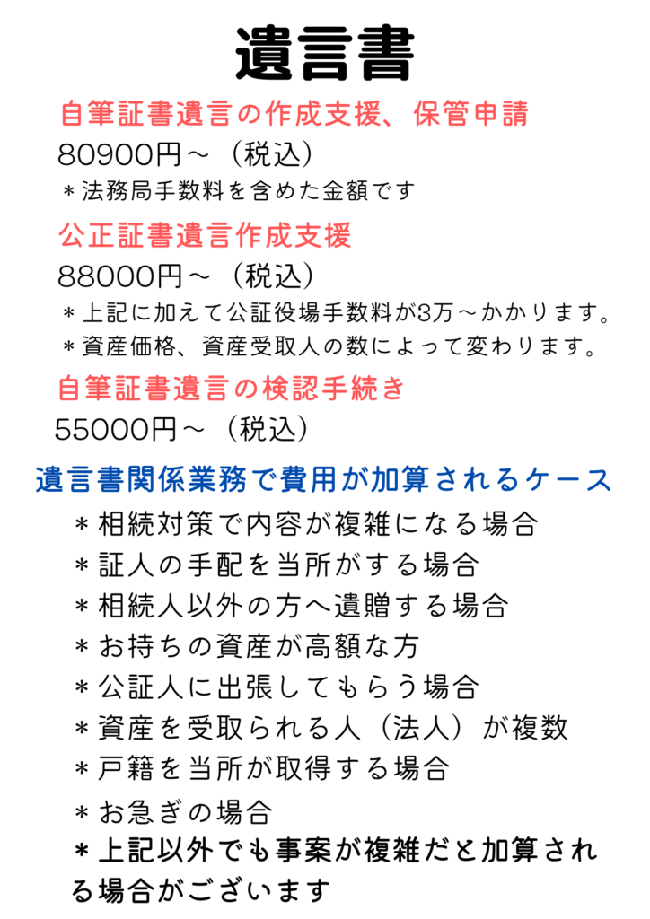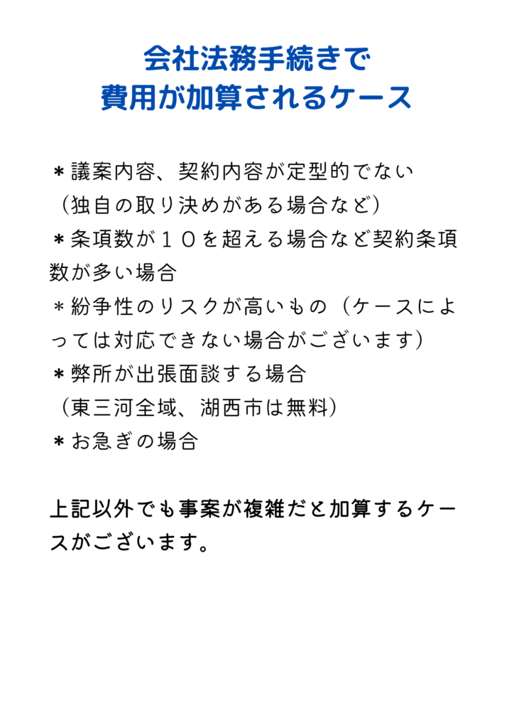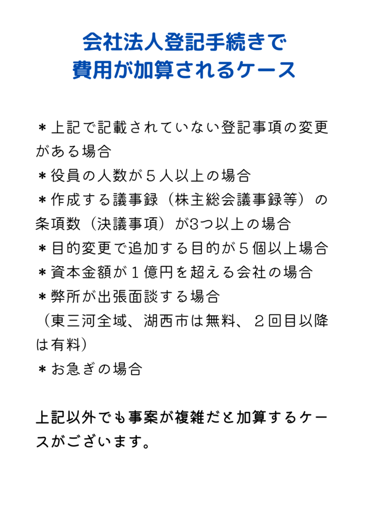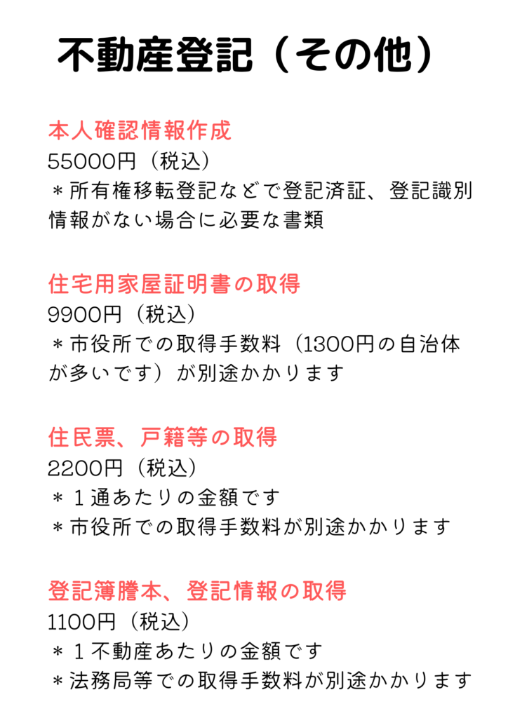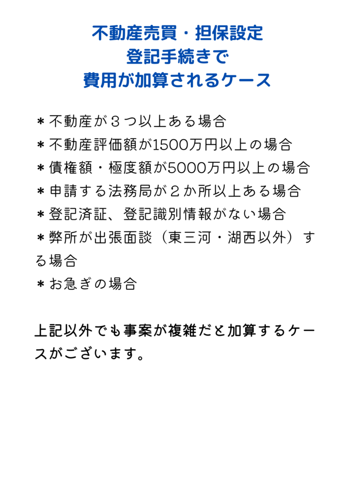 手続きの煩雑さによっては、料金表と異なる場合があります。